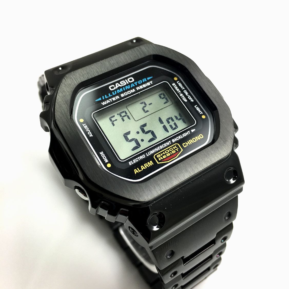 • This is a modified DW5600E-1V watch with Black PVD plated METAL bezel and bracelet.