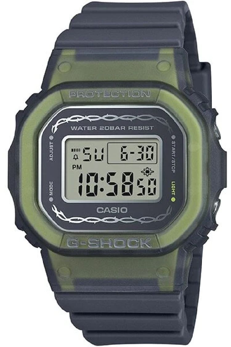 The Casio G-Shock GMD-S5610RS-8 from the 2024 Seasonal Rose Collection delivers bold yellow accents on a transparent grey bio-based resin shell. Built small yet tough for unisex use, it features a rose graphic backlight for friendship & peace, shock and water resistance, stopwatch, countdown, auto-LED illumination, and 3-year battery life.