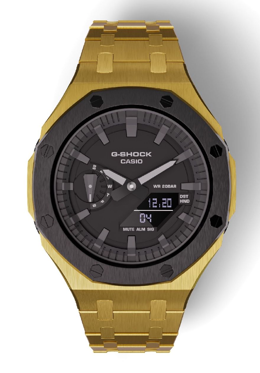 • Casioak Mod Royal Oak Casio G-Shock GA-2100 Gold Metal Watch Black Bezel GA2100