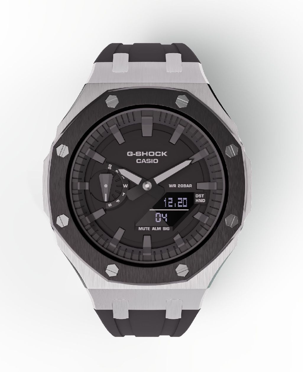 • Casioak Mod Royal Oak Casio G-Shock GA-2100 Metal Steel Black Band Watch GA2100