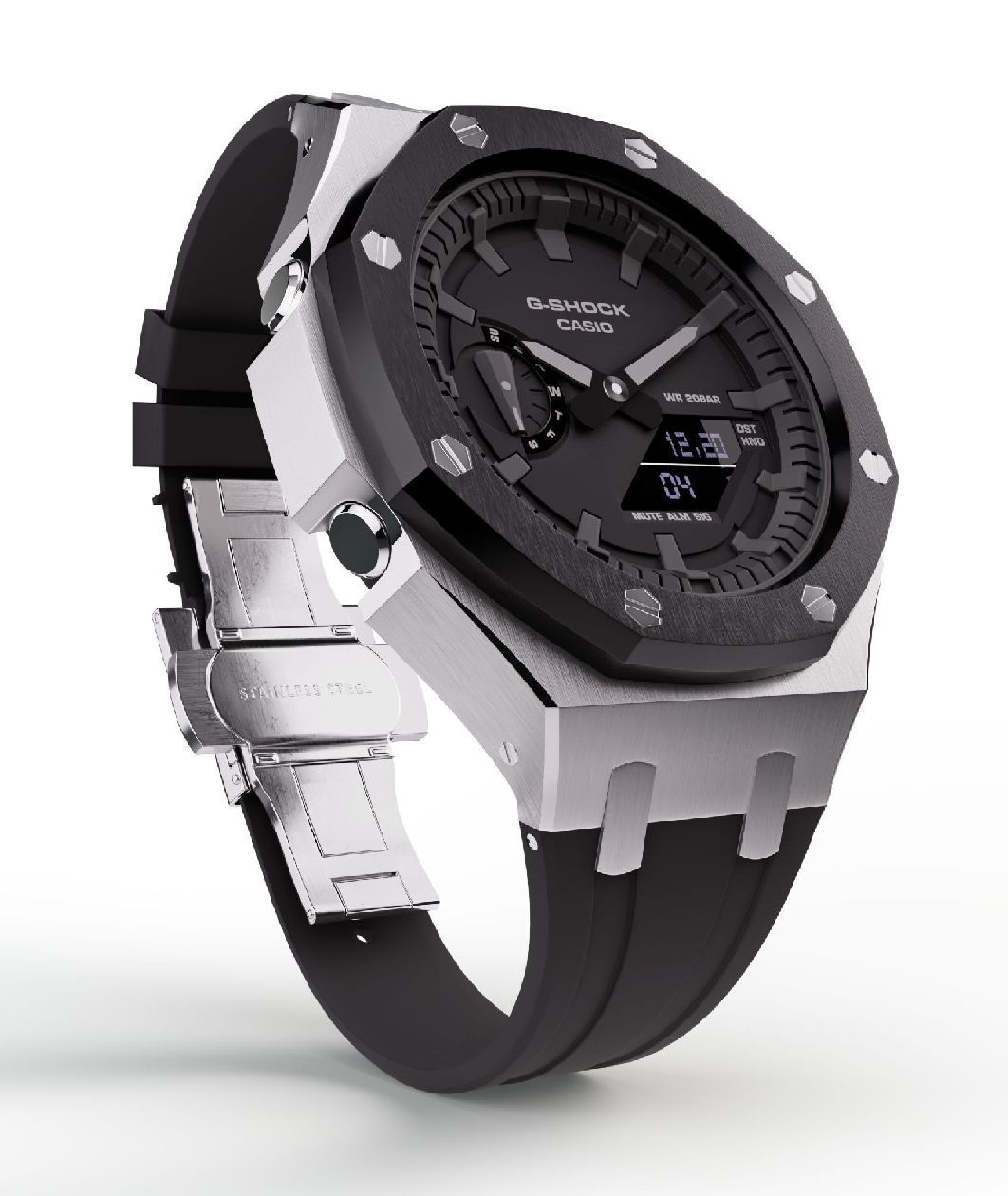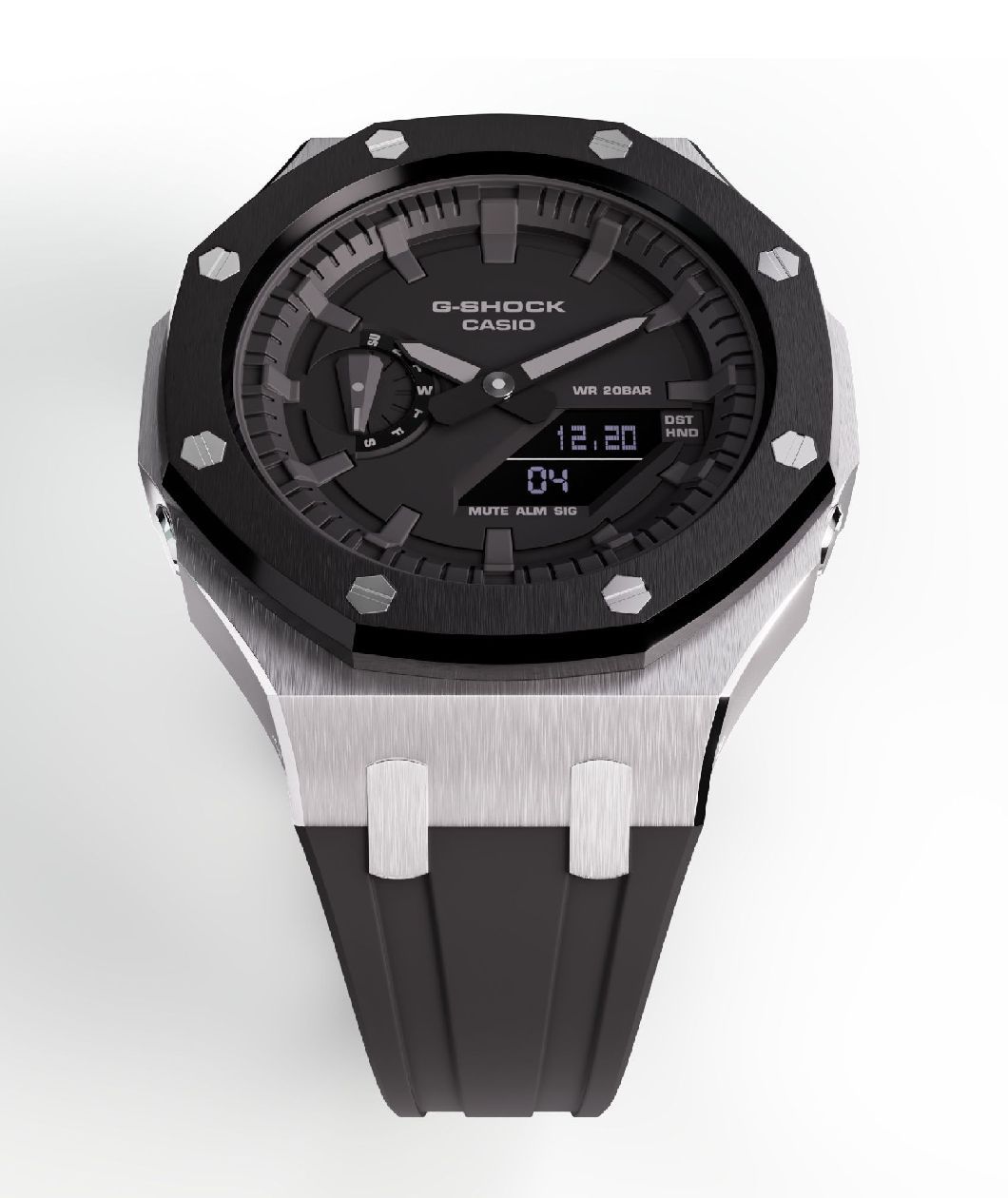 Casioak Mod Royal Oak Casio G-Shock GA-2100 Metal Steel Black Band Watch GA2100