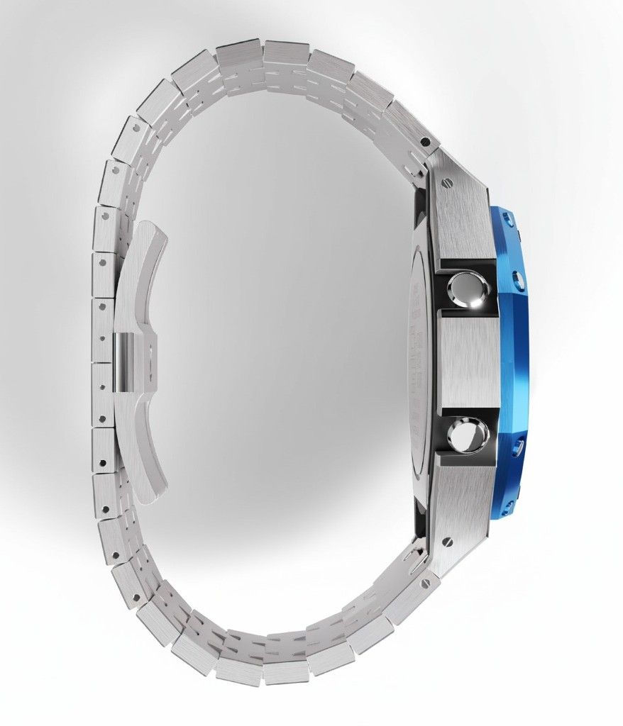 Casioak Mod Custom Watch Casio G-Shock GA-2100 Silver Case & Blue Bezel GA2100