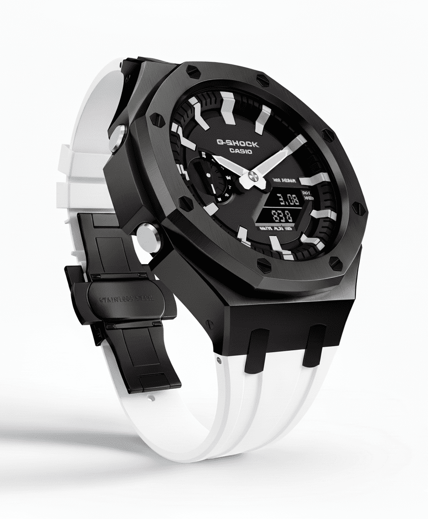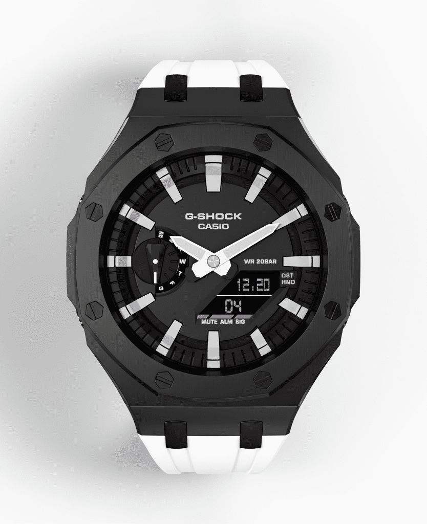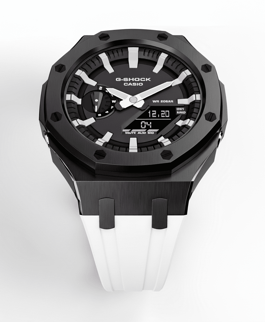 Casioak Mod Watch Casio G-Shock GA-2100 Black Case White Strap Modded GA2100-1A