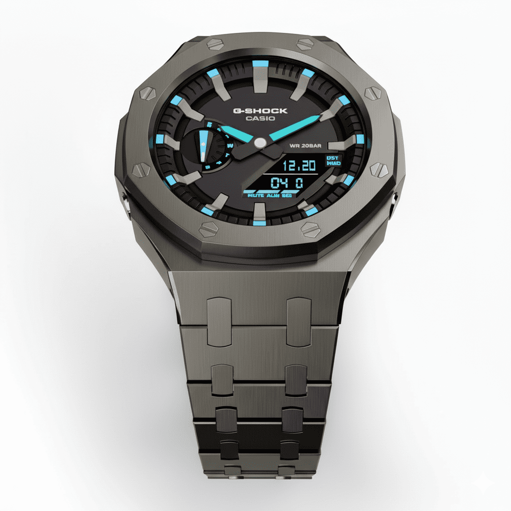 • Professionally modified G-Shock GA-2100-1A2 with steel upgrade