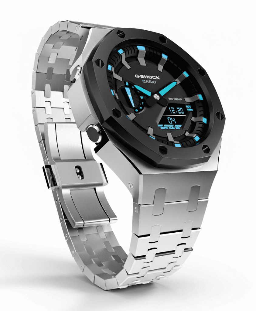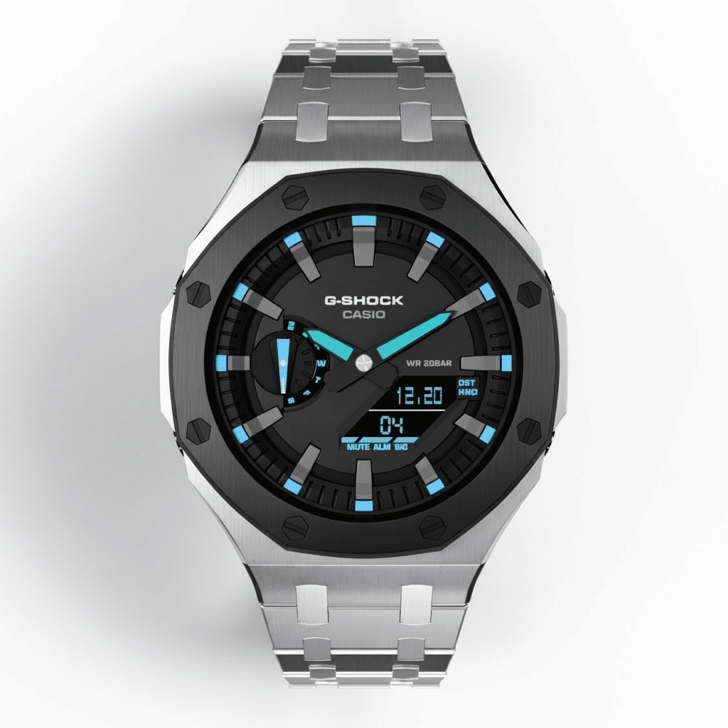 • Casioak Casio G-Shock GA-2100-1A2 MOD custom steel watch collection.