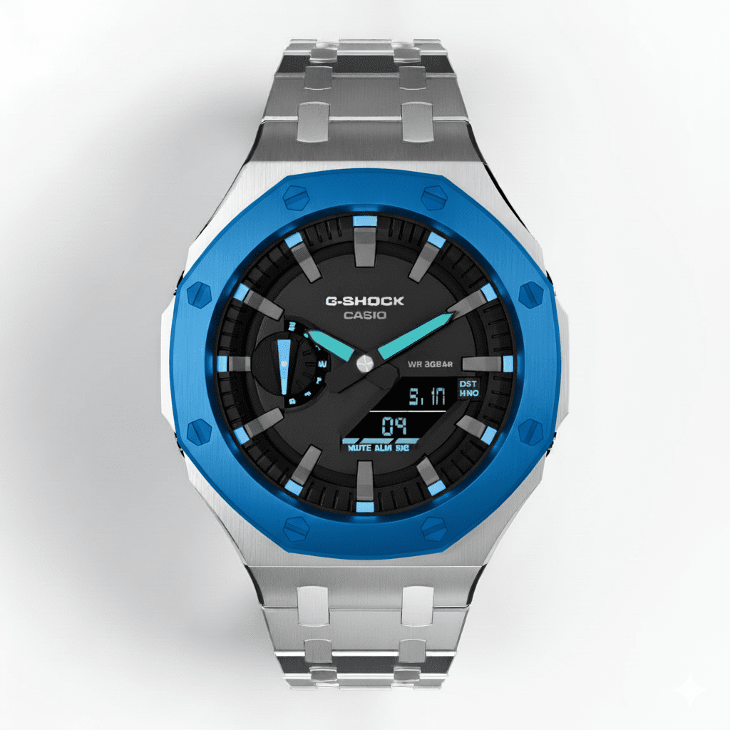 • Casioak Mod Watch Casio G-Shock GA-2100 Silver Case & Blue Bezel GA2100-1A2