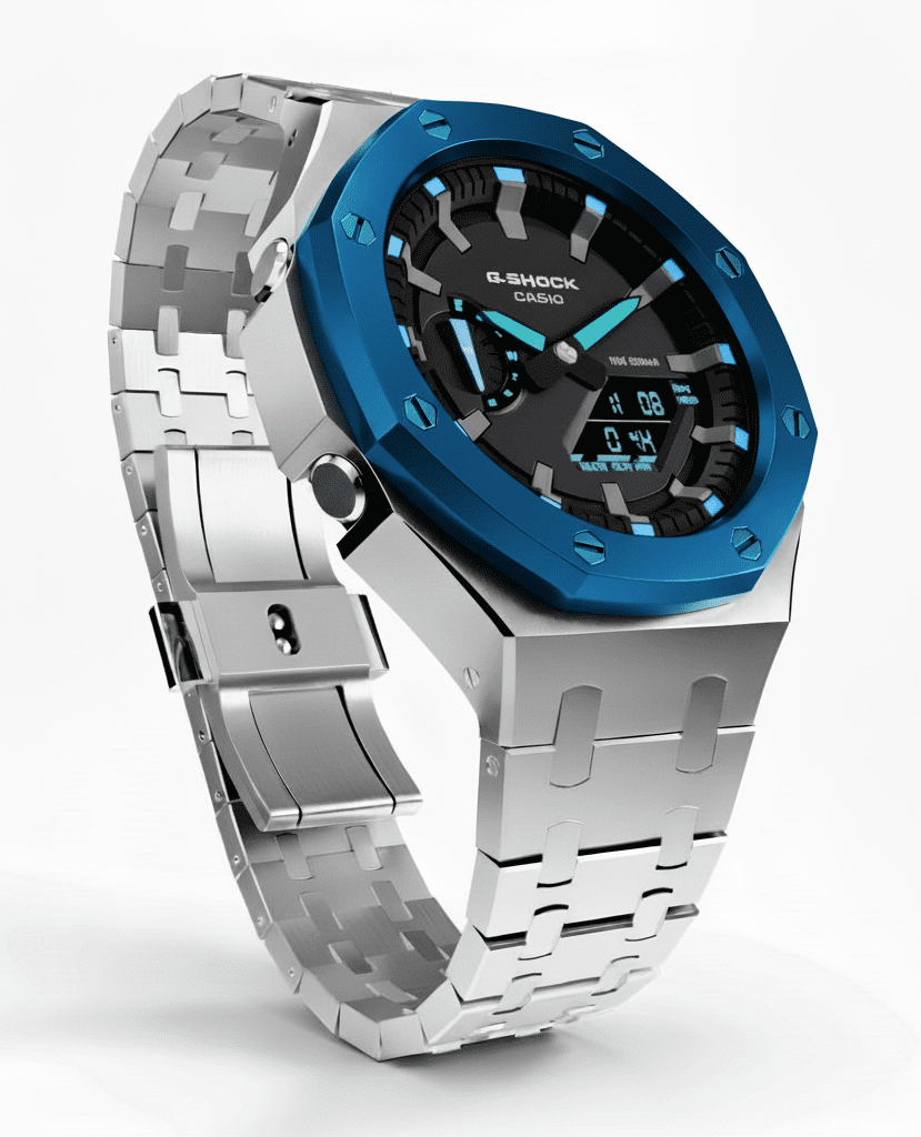 Casioak Mod Watch Casio G-Shock GA-2100 Silver Case & Blue Bezel GA2100-1A2