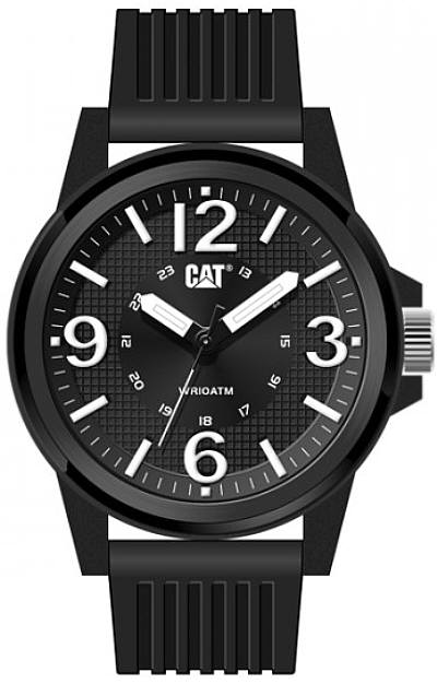 • Men's CAT Caterpillar Groovy All Black Silicone Band 45mm Watch LF11121131