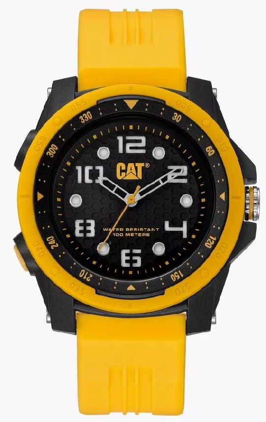 • Men's CAT Caterpillar Aperture Yellow Rubber Strap Analog Watch LP16027131